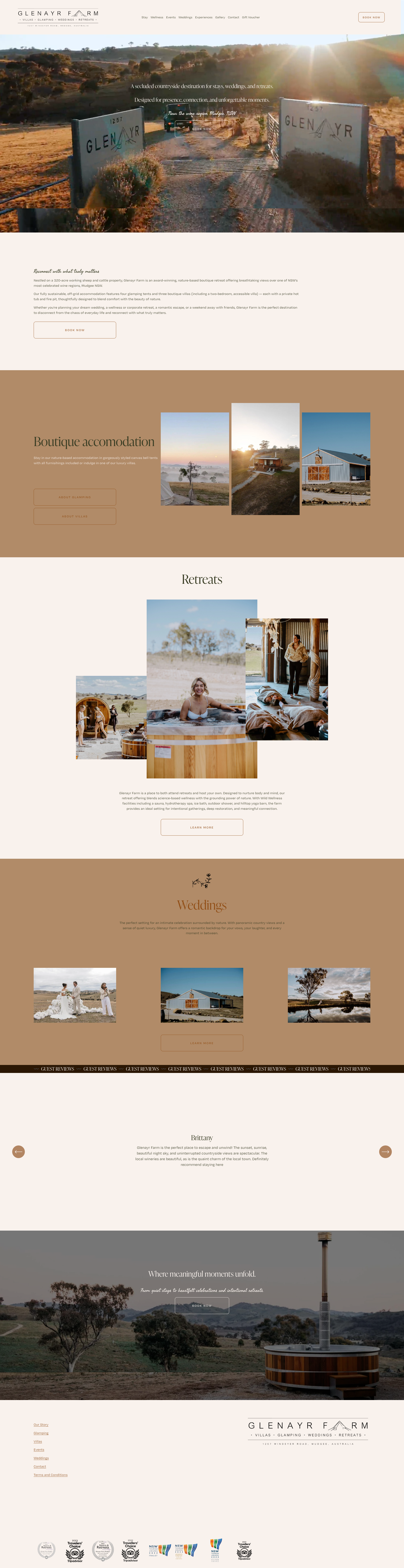 Positioning Glenayr Farm As A Secluded Countryside Destination For Stays, Weddings, And Retreats.
